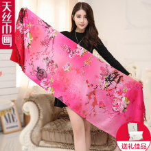 天丝巾画丝绸丝巾女士春秋季夏季春季长款百搭桑蚕丝披肩围巾两用