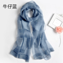 2016新款真丝丝巾桑蚕丝欧根纱纱巾春秋季冬季百搭长款披肩两用
