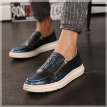 新款韩版男士乐福鞋蛇纹懒人鞋内增高豆豆鞋休闲真皮单鞋个性板鞋