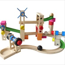 包邮木质儿童滚珠滑道流戏木制轨道过山车智力组合积木益智玩具
