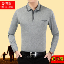 中年男士长袖t桖夏季薄款体恤衬衫领丝光棉t恤全棉中老年爸爸男装