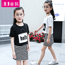 dd童装女童两件套2017新款中大儿童韩版百搭体恤裙子夏季休闲套装