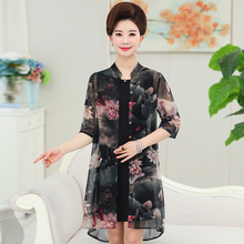 中老年女装夏装雪纺衫妈妈装短袖连衣裙中年人女士大码中长款裙子