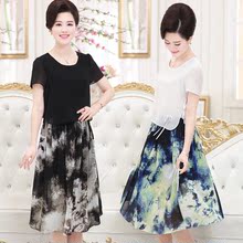 中老年两件套40-50岁中年女装时尚套装妈妈连衣裙春夏款薄款宽松