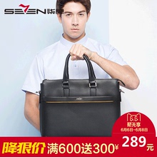seven7/柒牌男子黑色手提包潮流头层牛皮商务休闲青年公文包挎包