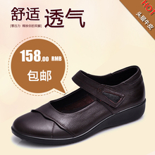 2016新款妈妈鞋真皮软底舒适妈妈皮鞋坡跟套脚女鞋单鞋中老年皮鞋