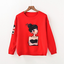 冬季卡通珍珠套头毛衣女短款韩版女装秋冬学院风外套冬装学生上衣