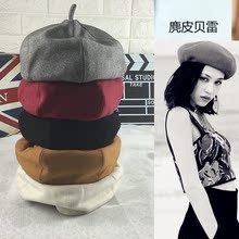 韩版东大门鹿皮绒复古秋冬女士贝雷帽蓓蕾帽画家帽子南瓜帽八角帽