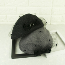 帽子女秋冬韩版纯羊毛呢小礼帽网纱蝴蝶结贝雷帽潮优雅黑色空姐帽