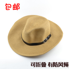 可折叠情侣款沙滩帽草帽牛仔钓鱼帽大沿帽夏天遮阳帽子男士礼帽