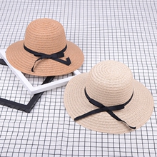 韩版女士夏天亲子帽子太阳帽 可折叠草帽 草编空顶帽沙滩帽遮阳帽