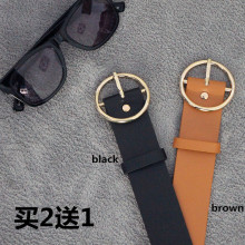 韩版百搭女士复古腰带原素潮流单品圆形金扣PU宽皮带休闲针扣裤带