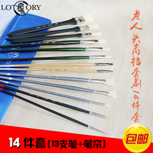包邮老人头高档14件画笔套装套刷板刷扇形笔水粉笔水彩油画勾线笔