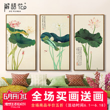 解语花新中式挂画荷花组合水墨画客厅装饰画玄关走廊挂画竖版国画