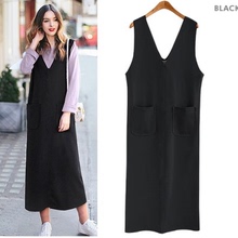春秋装新款宽松显瘦直筒连衣裙V领打底背心裙背带长裙马甲裙大码