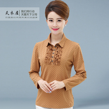妈妈装秋装新款女士t恤长袖纯棉翻领绣花中老年女装长袖t恤女