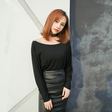 2017春装新品韩版女装修身中长款涂层皮弹力荷叶边半身裙包臀裙潮