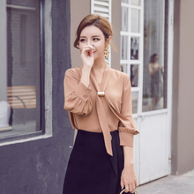 2017夏装新款女装韩版气质白领金属扣领带九分袖衬衫衬衣雪纺衫
