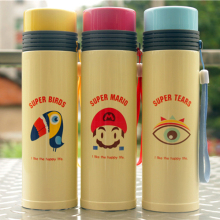 马里奥不锈钢时尚大白保温杯直身杯学生儿童男女卡通带茶漏便携杯