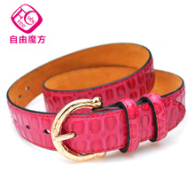 自由魔方 腰带女士韩版时尚百搭牛皮带 女式针扣腰带 宽皮带7122
