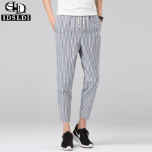 2017新款夏季棉麻9分条纹休闲裤男夏天九分裤潮韩版修身小脚超薄