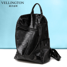威灵迪顿真皮双肩包女头层牛皮欧美时尚鳄鱼纹女士旅行背包大容量