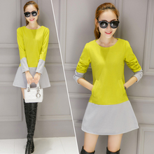 拼接撞色打底连衣裙2017春秋新款长袖韩版女装修身显瘦中长款裙子
