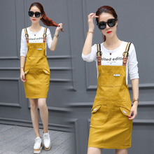 2017春秋冬新款韩版中长款连衣裙背带裙套装学生裙子两件套女装