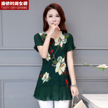 夏季大码短袖宽松上衣女雪纺衫T恤小衫中年少妇女士30岁40妈妈装