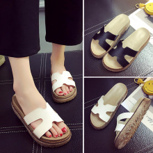2017韩版平底拖鞋女夏季厚底平跟外穿沙滩海边一字拖半拖凉鞋