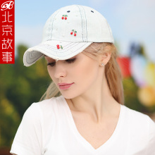北京故事韩版时尚 牛仔樱桃户外运动棒球帽子 遮阳防晒鸭舌帽