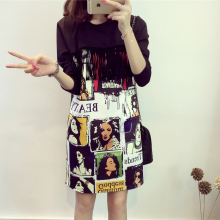 2017春装韩版新款时尚百搭流苏百搭显瘦印花卫衣T恤连衣裙女 潮