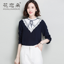 衬衣女2017春秋气质OL百搭衬衫系带立领长袖女上衣荷叶袖打底女衫
