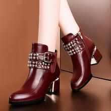 2016秋冬季女鞋新款英伦铆钉粗跟马丁靴潮女短靴短筒时尚高跟女靴