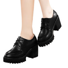 2017春秋季女鞋新款英伦风粗跟中跟鞋厚底休闲鞋单鞋女皮鞋潮女式