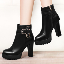 2016马丁靴女高跟冬季女鞋欧美潮皮鞋女圆头粗跟短靴女春秋单靴子