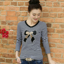 2017春装新款韩版秋衣外穿条纹长袖t恤女百搭衣服春秋女装上衣潮