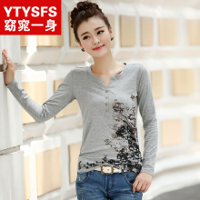 2017春装韩版修身体恤新款印花长袖T恤女小衫打底衫女装百搭上衣