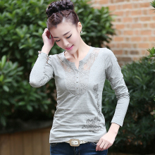 2017春装女装新款小衫女式衣服蕾丝t桖打底衫长袖t恤女百搭上衣潮