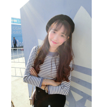 【ANLI STYLE】万能百搭韩系条纹 蓝黑打底针织Tee