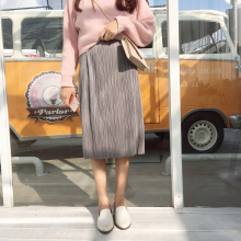 【ANLI STYLE】冬季长裙 甜美百搭 双虚线针织长裙 半身裙