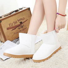 冬季皮面中筒雪地靴女潮流厚底羊毛学生鞋休闲鞋女士高帮棉靴多色