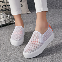 夏季透气帆布鞋女松糕厚底网鞋平底休闲低帮鞋懒人一脚蹬凉鞋单鞋