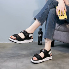 2017夏季韩版新款厚底松糕凉鞋弹力布沙滩学生百搭魔术贴休闲凉鞋