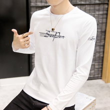 秋季新款纯棉长袖T恤韩版印花圆领修身青少年男装潮打底衫上衣服