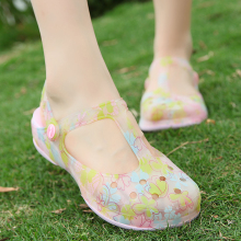 17夏新洞洞鞋女玛丽珍印花平跟 女鞋 沙滩鞋透明果冻塑料凉拖鞋