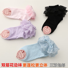 3双包邮新款日系双层蕾丝花边袜子全棉吸汗舞蹈袜蓬松花边女袜子