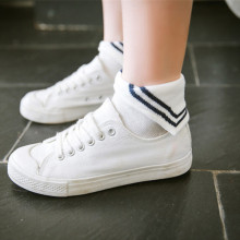 日系翻领海军袜黑色条纹纯棉浅口短袜小清新软妹袜子白色堆堆袜