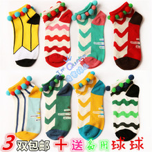 3双包邮原宿可爱塔家球球短袜日系手工缝制多彩球球纯棉女袜子