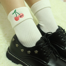 3双包邮日系翻边短袜樱桃贝壳刺绣女袜子文艺小清新秋冬青涩袜子